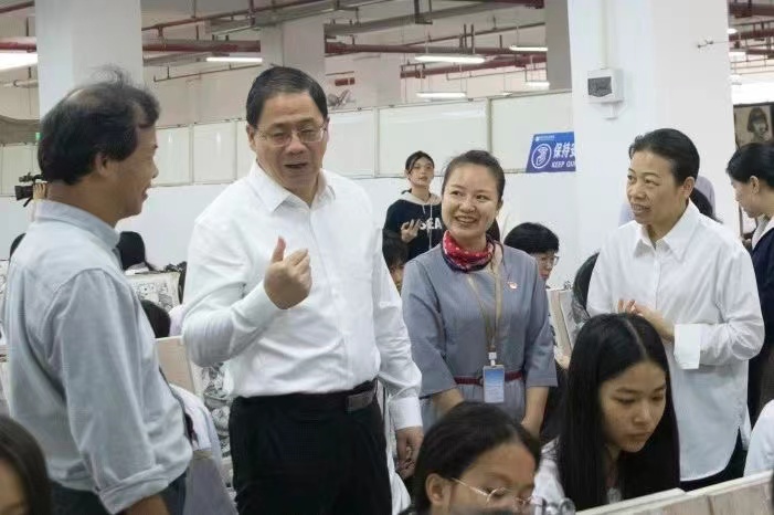 我校张毅书记汇报了我校办学历史,我校主要开设有绘画、戏曲表演、运动训练、机器人技术应用、现代家政服务与管理和计算机平面设计6个专业,办学以来为大学输送大批优秀学子。
